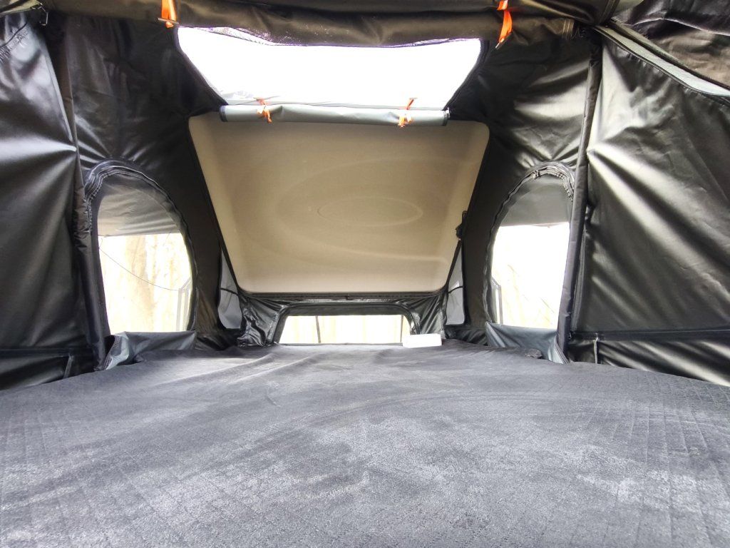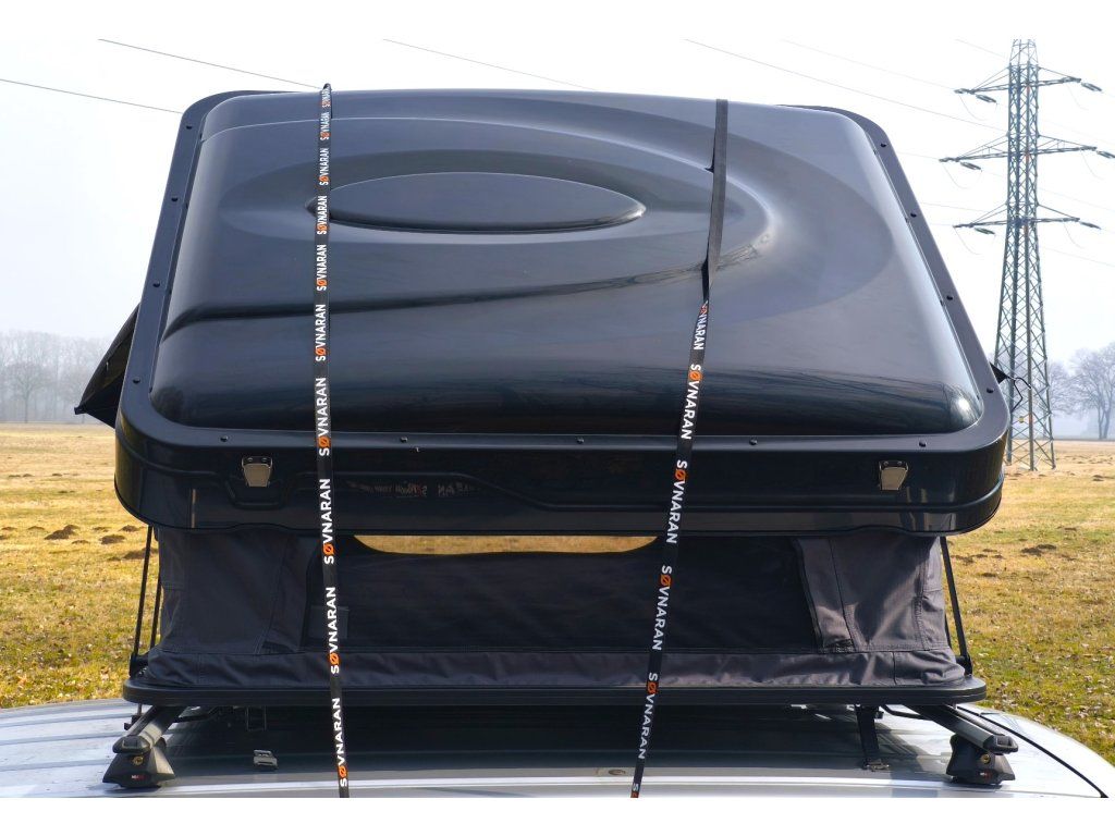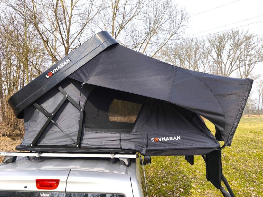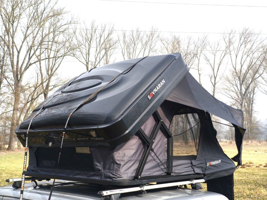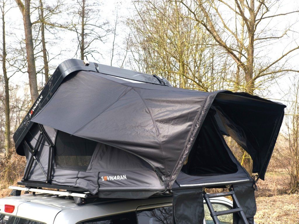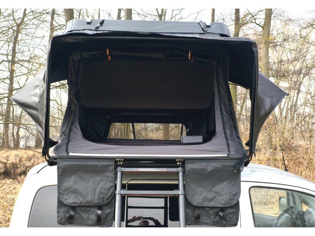 Černá ABS skořepina v kombinaci s šedou látkou stanu vypadá na střeše jakéhokoliv auta naprosto fantasticky a díky nízkému profilu (30 cm ve složeném stavu) minimalizuje odpor vzduchu při jízdě.